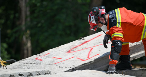 国务院办公厅近日印发《国家地震应急预案》。其中提出,建立健全重要救灾物资和装备储备目录制修订、集中生产调度、产能储备、紧急采购供应、运输保障等工作机制,保障抗震救灾工作所需生活救助物资、地震救援和工程抢险装备、医疗器械和药品等生产供应。图为中国救援队队员在训练基地进行地震搜救演练。