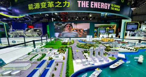 零碳进博、绿色办博一直是进博会的要求。作为最早进入中国的能源设备制造及服务商之一,GE Vernova以“能源变革之力”为主题亮相第八届进博会技术装备展区,集中展示其在能源转型方面的领先成果以及可持续发展方面的成就。图为GE Vernova能源转型沙盘。