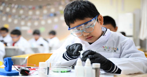 教育部、财政部等七部门近日出台《关于加强中小学科技教育的意见》。其中提出,要加强科技实验室等教学设施的建设和改造,为学生提供一站式学习服务。做好经费保障,重点支持科技教育课程开发、资源建设等工作。图为学生在陕西省西安市一小学参加科学实验操作比赛。
