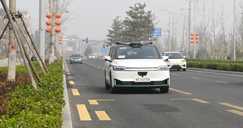 在雄安,科技不是抽象的概念,而是化作了一个个可触可感的智慧生活场景。“未来之城”的创新理念和智慧之光,让雄安的未来拥有无限可能。图为一辆无人驾驶网约车在雄安新区容东片区街道上行驶。
