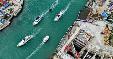 交通运输部等五部门近日出台《关于健全交通运输行业信用体系的实施意见》。其中提出,健全守信激励和失信惩戒机制,在招标投标工作中,支持依法依规对守信主体采取增加参与投标的标段数量、减免投标保证金、减少履约保证金和质量保证金等激励措施。优化消费环境,拓展租车包车、游艇游船租赁、自驾旅游、电商快递、低空交通物流等信用消费场景。图为游艇从海南三亚河口通道工程项目上驶过。